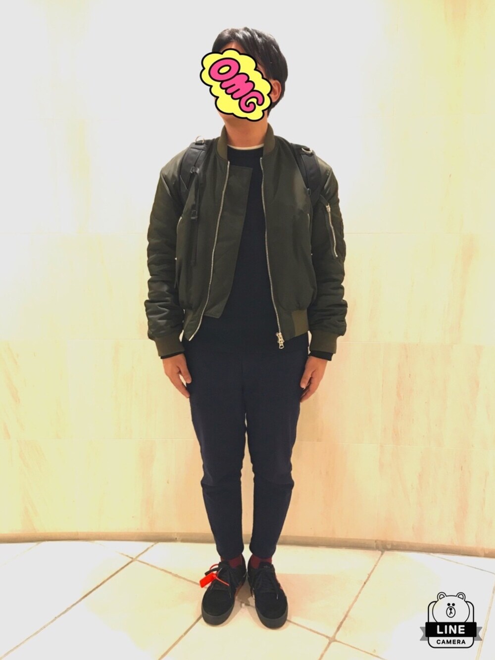 パンツがネイビーですが、光の関係で黒く見える。。。