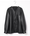 ノーカラーレザーシャツをデニムと。 カジュアルな雰囲気でも使いやすいです。