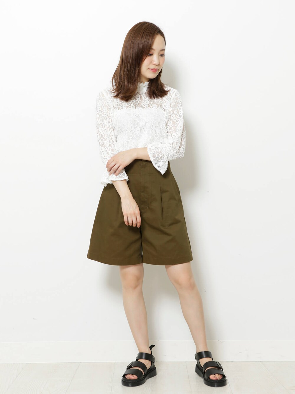 モデル身長:154cm 真夏は暑いのでショートパンツを履きたいけど、 でも丈感が短すぎて履けない、 という大人女子の為のショートパンツ。 フレアになっているので太ももが細く見える効果が◎ ハイウエストで脚長効果も抜群なので スタイルがとても良く見えます! 透け感のあるレースブラウスを合わせましたが ラフなTシャツを合わせてカジュアルにしても♪ ご覧いただきありがとうございます✩ INKWELLSTAFFの もんまさん。もWEAR投稿始めました! ☞@inkwell1016 (164cm) 各SNSでは新作&再入荷情報などを いち早くお届けいたします。 是非フォローお願いします✨ Instagram▷@inkwell_tokyo Twitter▷@INKWELL_TOKYO LINE@▷[ @inkwell ]で検索🔍