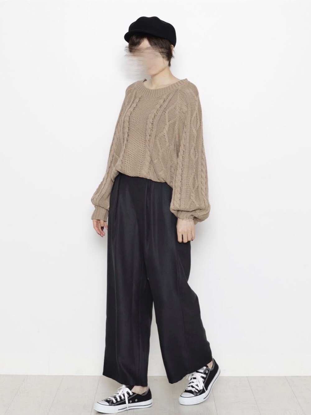 INKWELLのニット/セーター「ゆったりドルマン2wayケーブルニット」を使ったコーディネート
