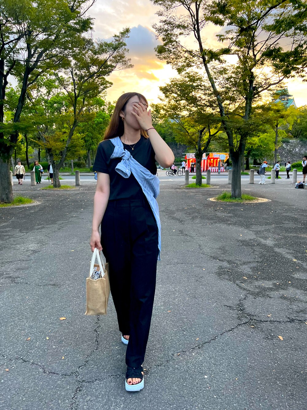 ・ ・ 最近は黒着がちなのでストライプシャツを差し色で🤞🏻💙 UNIQLO様重宝してる◎ タックワイドパンツはお世話になりまくりです😂