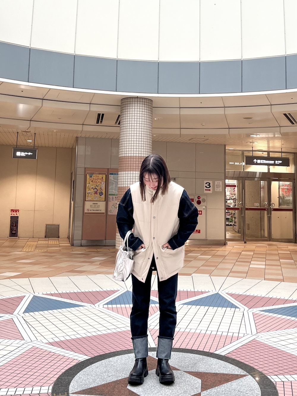 ・ ・ この白のダウンベストはPAL CLOSETアプリのsaleで50%offだった!🤍 BONLECILLのデニムセットアップ、プチプラでお気に入り👖🫶🏻