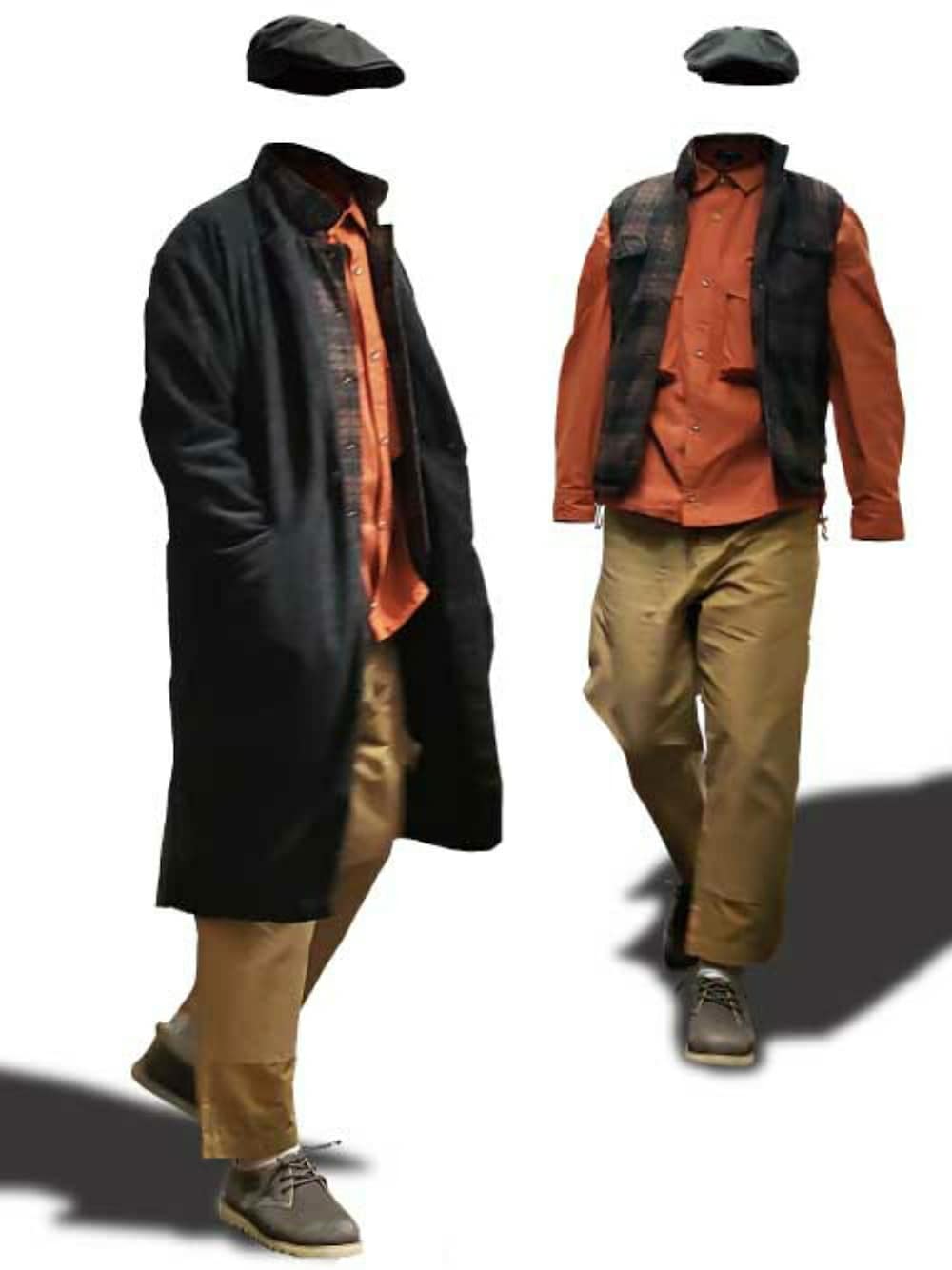 今シーズン狙うべき最旬アウター Chesterfield Coat 是款可以全能搭配的及膝長版大衣,門襟流暢筆直的輪廓,灰黑色系還具有收緊效果。 引人注目的橘色寬鬆襯衫,以紅黑色格紋鋪棉背心,作為過渡色,平衡整個造型的色彩,為秋冬搭配增光添彩。