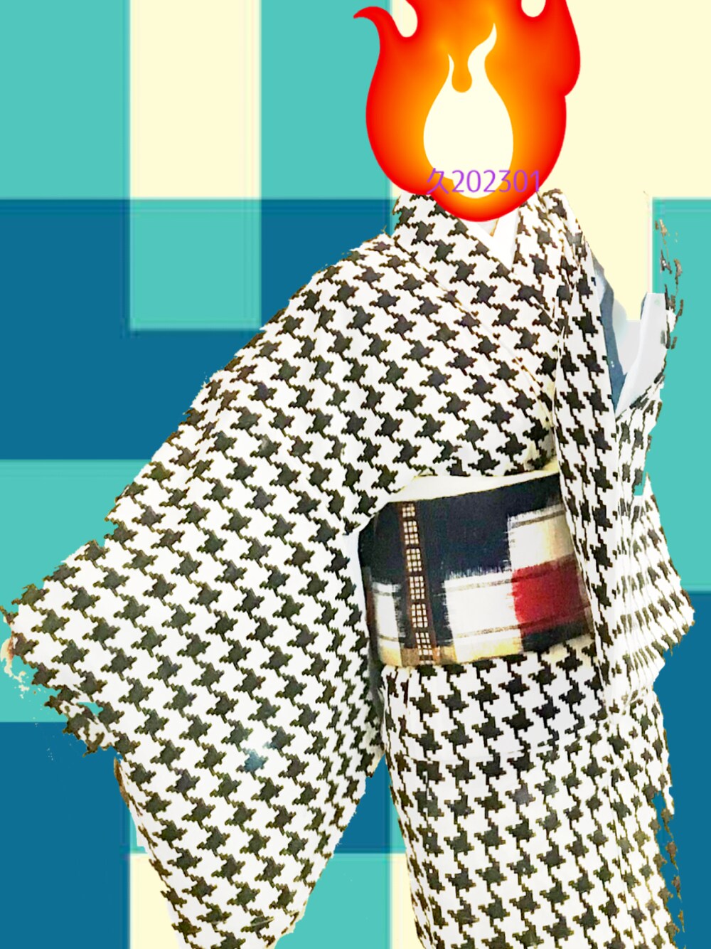 着物 色/白 豆千代モダン ウール 千鳥格子