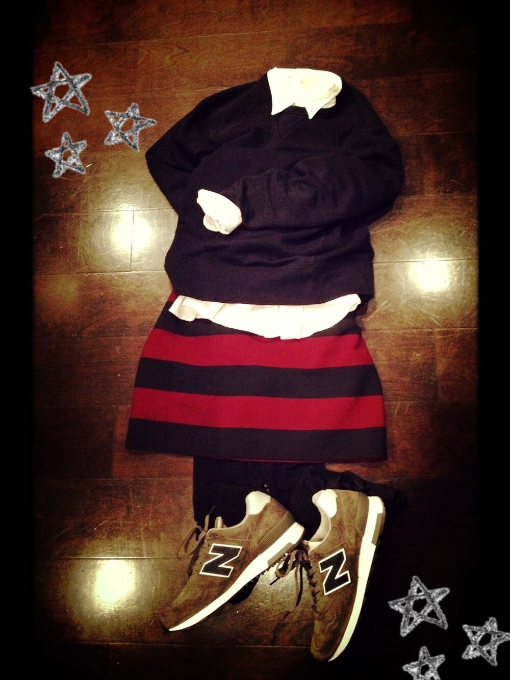 今日のコーデ。 外回りが多かったので歩きやすいNBで♪ スウェット UNIQLOメンズ スカート ZARA