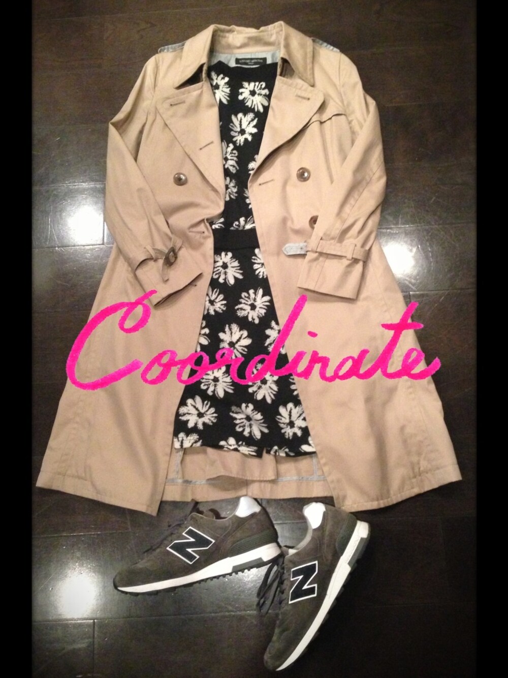 花柄スウェット✖タイトスカートのセットアップ♪ トレンチコートでカッチリ決めつつ、足元はニユーバランスではずしてます♪♪ (∩´(エ)`∩) トレンチコート/ユナイテッドアローズ シューズ/ニューバランス1400