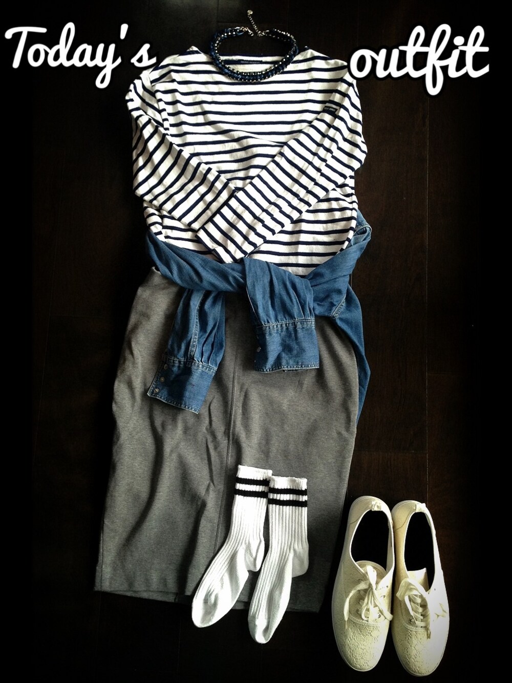 セントジェームスのボーダー大好き! 何枚も集めちゃってます(∩´(エ)`∩) 今日は、最近H&Mで買った、厚底スニーカーに合わせて☆☆ トップス/セントジェームス スカート/ユニクロ デニムシャツ/LEE スニーカー/H&M