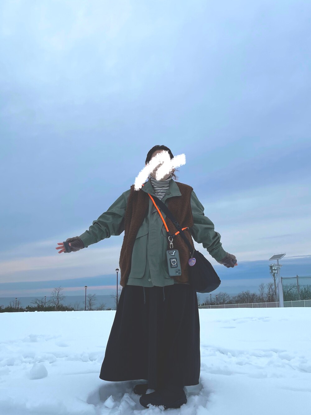 白銀の世界❄⛄𓈒𓂂𓏸 #Right-onのジャケット ¥990 #古着のボーダータートルニット ¥300 すごくお得に買えてどっちもお気に入り⚆.̮⚆🧡