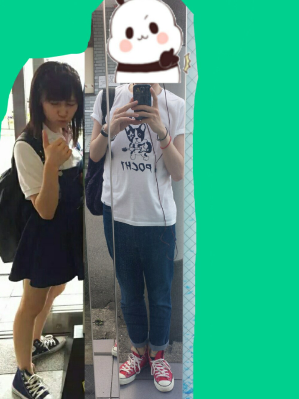 まーちゃんとはるなんは、コンバース(ハイカット)のベロを横にずらして履いているようなのです。 このため、マネしました! そしたら靴下が見えました( ´∀`) はるなんが赤のカタカナコンバースをよく履いているそうなので、赤を引っ張り出してきましたけど、はるなん似合いすぎ!! 来週はまーちゃんと同じ黒にするぞ~