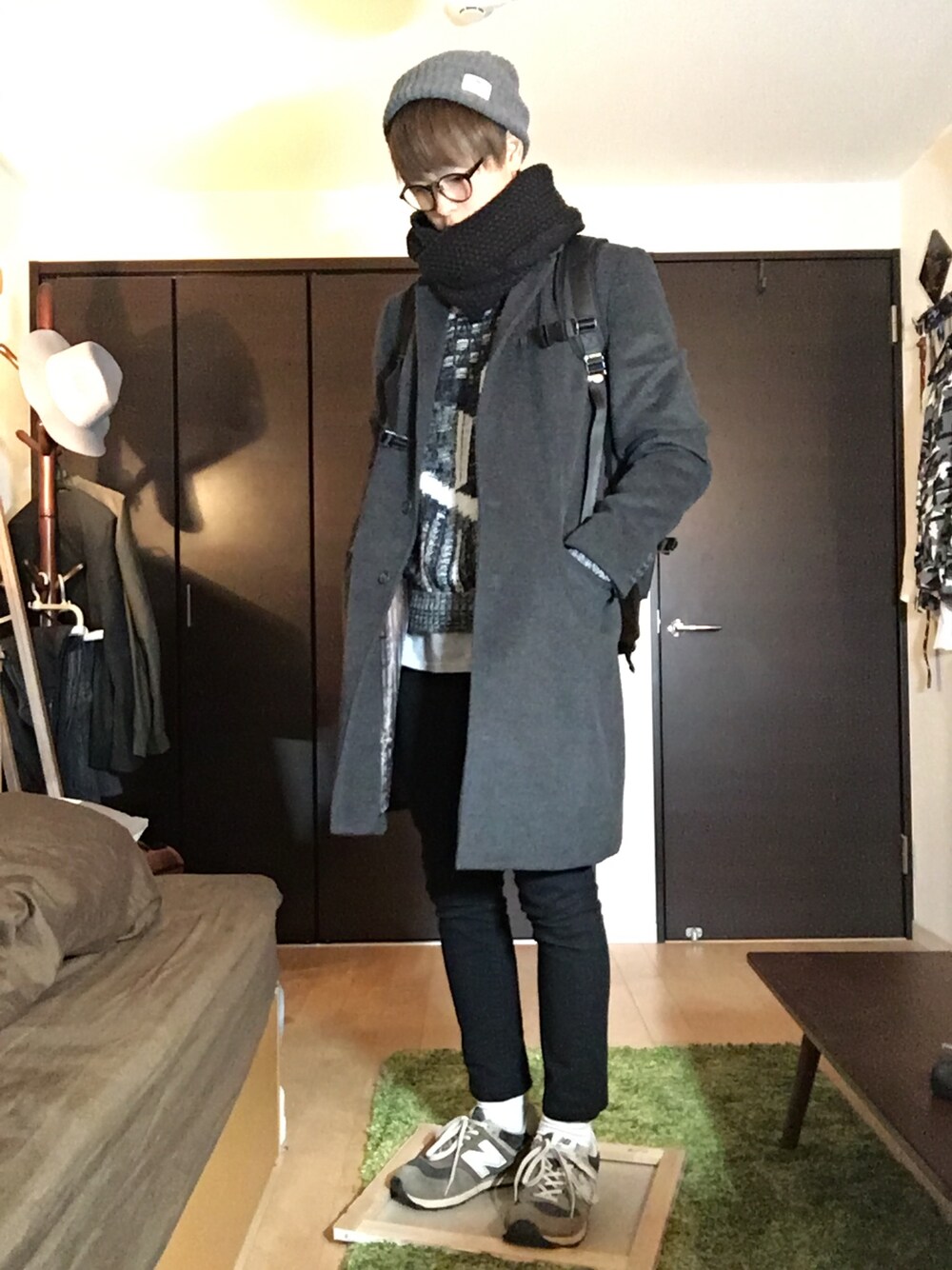 久しぶりの投稿です🙌🏻 今回はGU×古着コーデです! GUのニット帽、チェスターコート、パンツに古着のニットを合わせました👼🏼 ニット帽とメガネはかっこいいです🤘🏻🤘🏻 同系色の服を合わせて安っぽく見えなくしました🙃