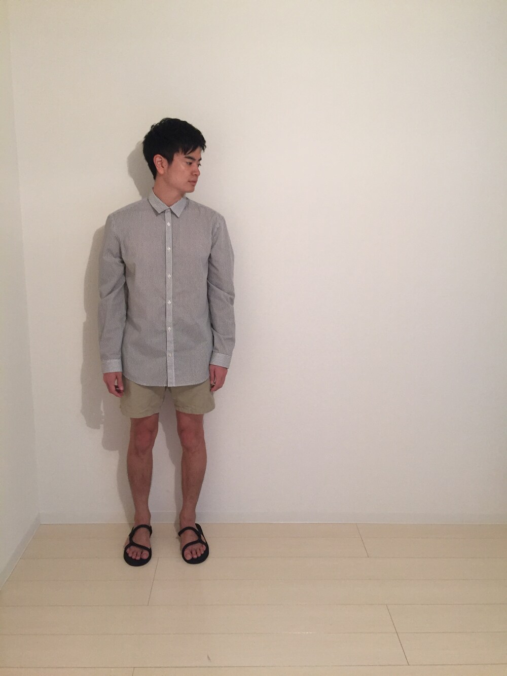 オーバーサイズのシャツに、短めのショーツを合わせました。