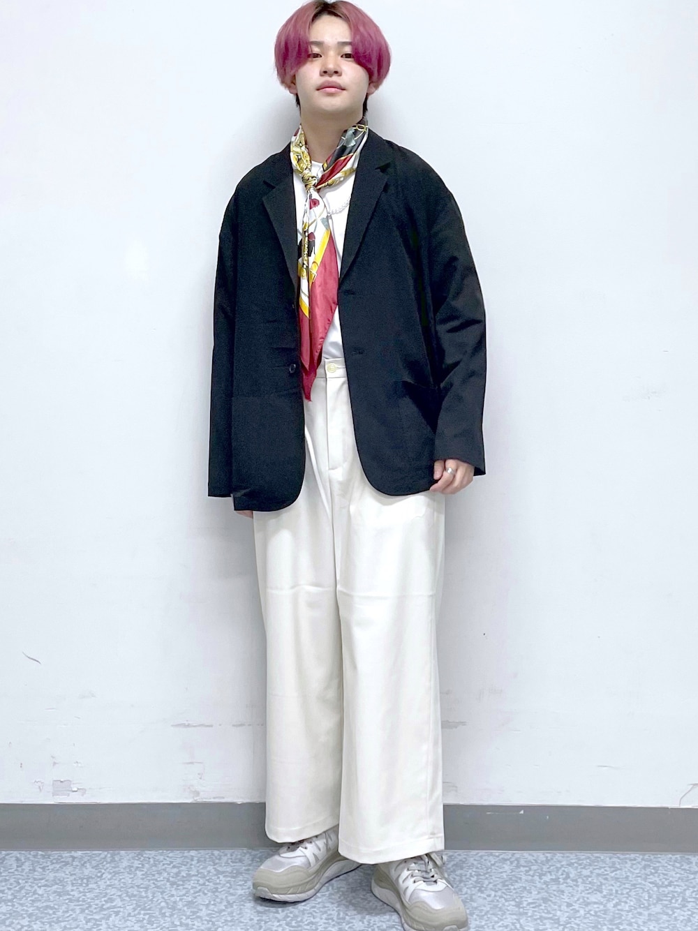 ご覧頂きありがとございます!! 𝕝𝕟𝕤𝕥𝕒𝕘𝕣𝕒𝕞も力を入れてるのでフォローお願いします! @insta__y1027 今回はモノトーンコーデに大胆なスカーフでアクセントをしてみました!! 羽織りのジャケットは¥6600のセットアップを着回ししております! 重たくなりすぎないように白パンツでクリーンな印象に! インスタグラムで質問など返してます!😉 商品は.stまたはzozotownで購入可能です!◎ RAGEBLUE リンクス梅田店でお待ちしております!!