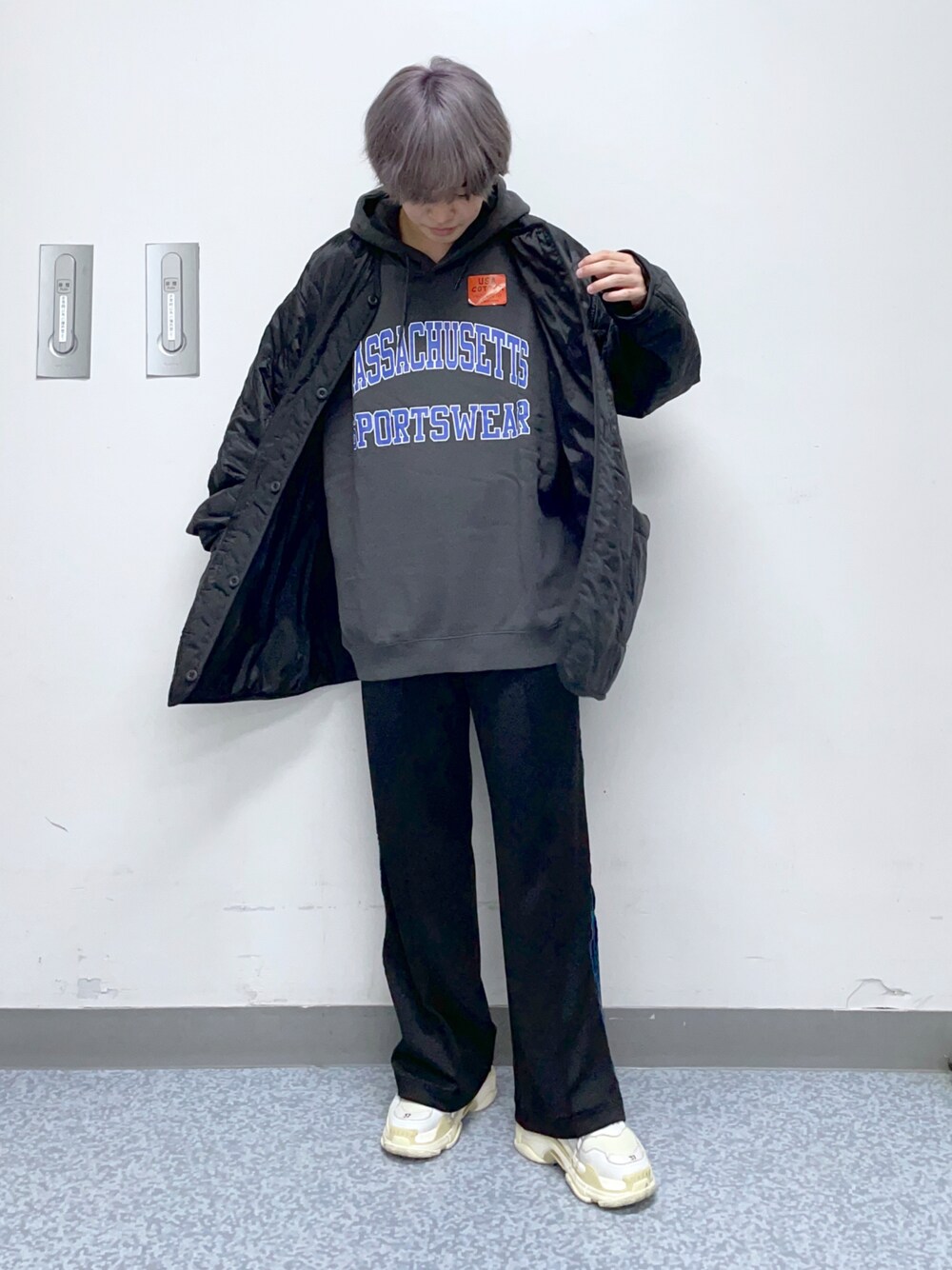 トレンドのカレッジ!! パーカーとキルティングで秋ぽく! トラックパンツやスニーカーでとことんカジュアルに!
