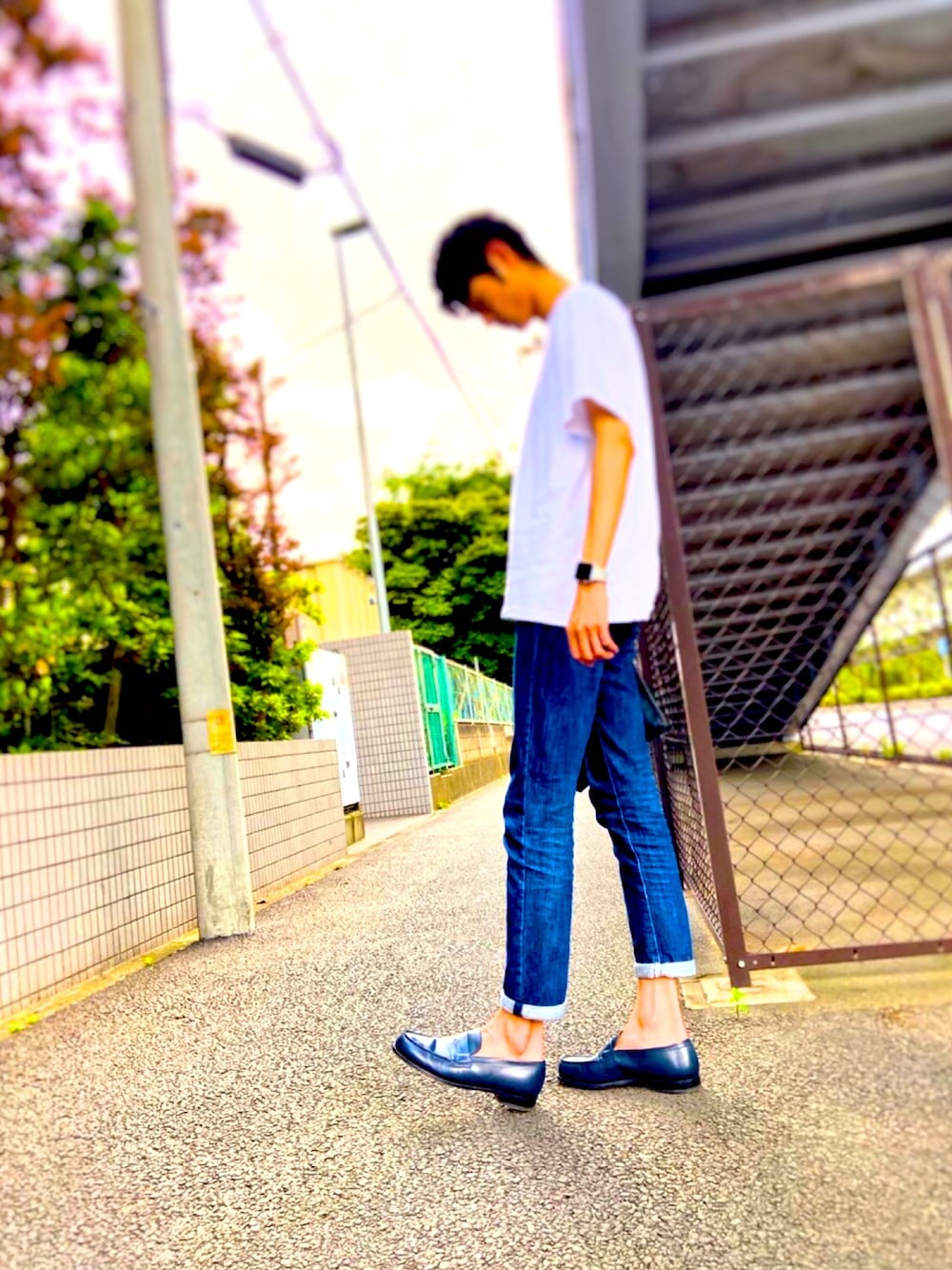 たまには着画。 この暑さはTシャツとデニムとローファーの3点セットに限ります。