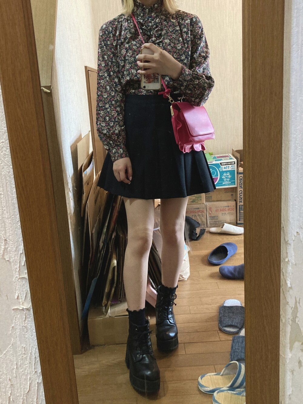彩度を下げてピンクだけ強調した写真をインスタであげる女のコーデ
