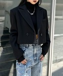 yamのテーラードジャケット「【LVEU.】フェイクウールクロップドジャケット / アウター ウール調 ジャケット テーラード クロップド ショート丈 チャコール グレー ブラック オリジナル」を使ったコーディネート