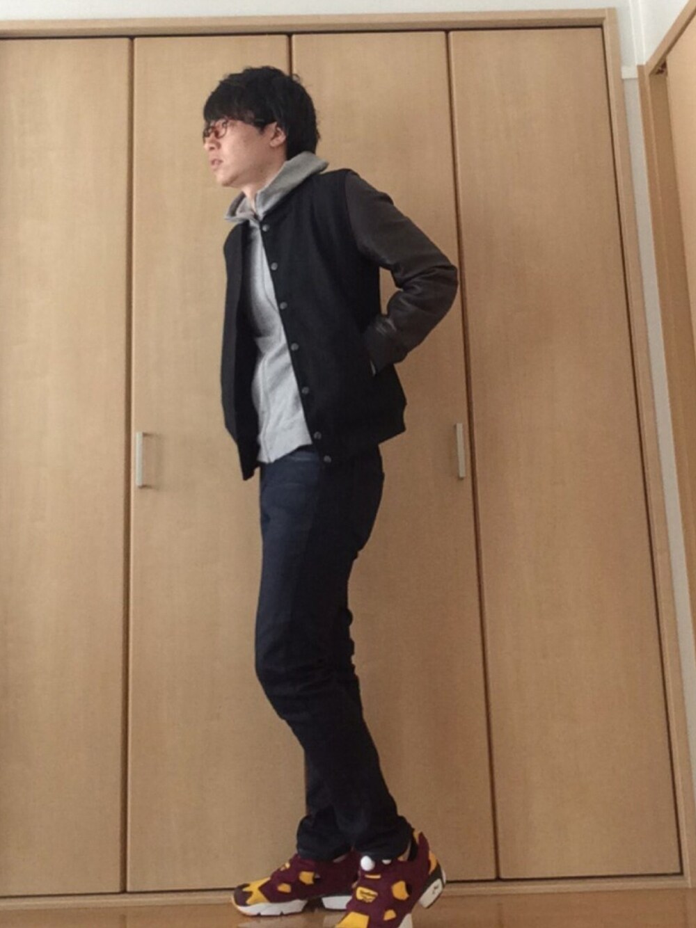 九州男児:0001号のスタジャン「STUDIOUS レザースリーブメルトンスタジャン MADE IN JAPAN」を使ったコーディネート