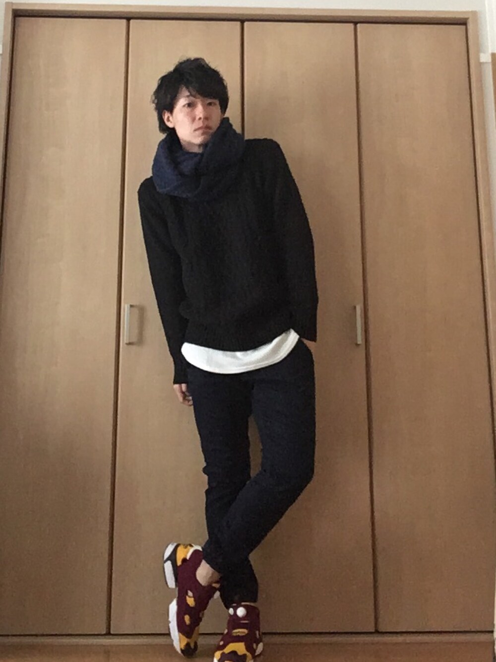 九州男児:0001号のストール/ショール「◆ボリュームスヌード」を使ったコーディネート