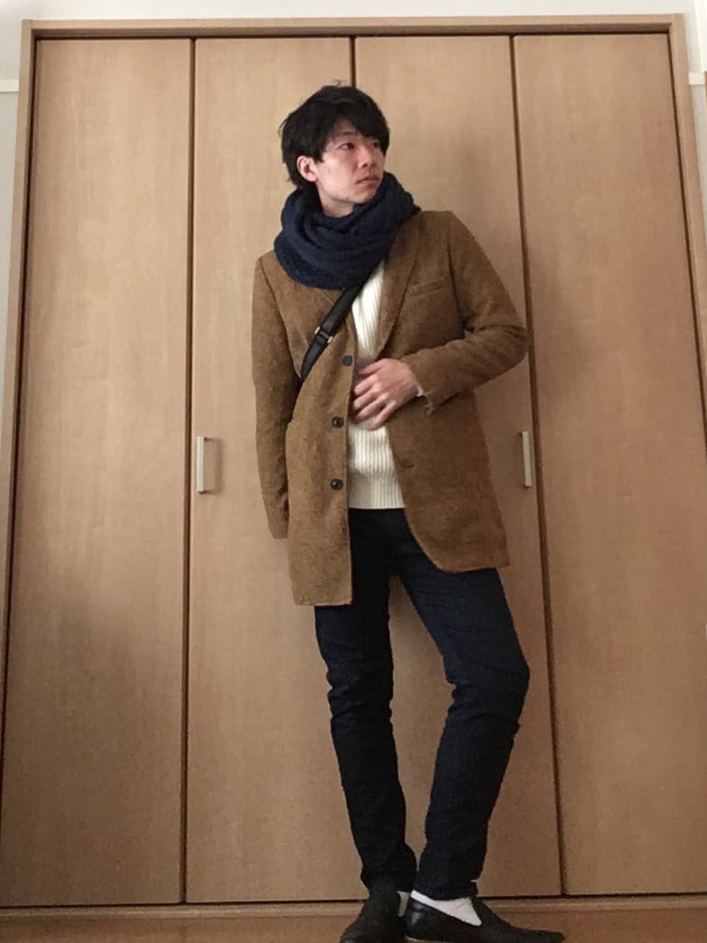 九州男児:0001号のストール/ショール「◆ボリュームスヌード」を使ったコーディネート