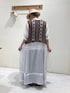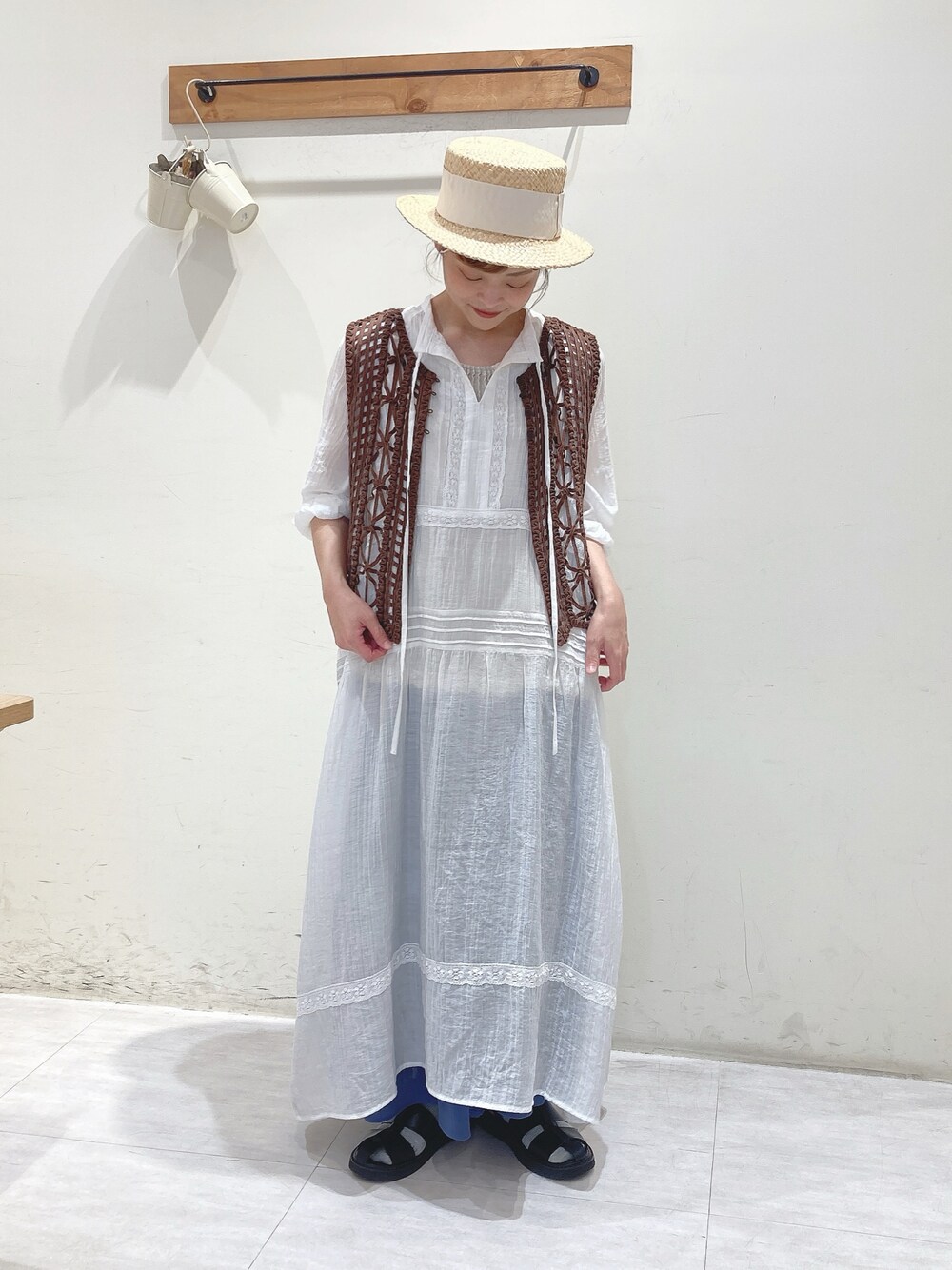 とっっても軽くて涼しいワンピースのご紹介です。 袖の長さは7部袖、ボタンが付いたシャツ袖です。裾も長く、ヘムデザインに近い雰囲気です。見た目は暑そうかも知れませんが、生地がとにかく軽く、ヒラヒラゆらゆら揺れるところから風が入り真夏でも過ごしやすいです。 下に履いたガウチョパンツも軽さがあり、裏地のおかげで透けないのでノンストレス👏 シンプルではありますが、胸元や腰に入るレースがさりげない甘さでパンツスタイルを華やかにしてくれます!