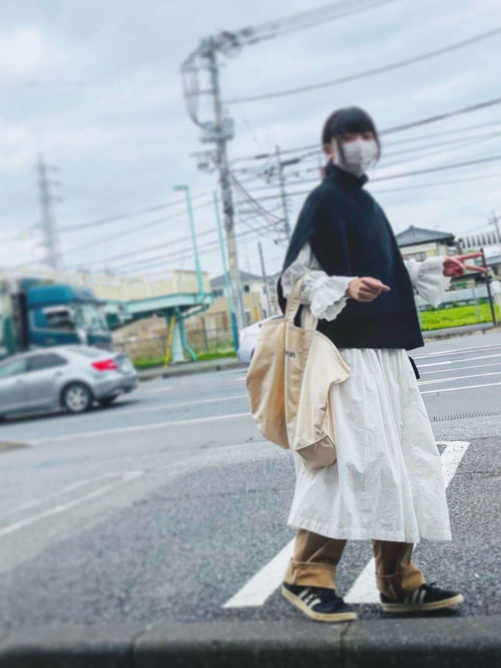 朝と夕方は冷えるけど昼間はそこそこ暑いというむずかしい気温に、 ニットベストはけっこう適してて さいきんそんな気温の日が多いのでニットベストばっかり着てます。 この日は袖がかわいいブラウスをあわせて、 足元はボーイッシュにして、 全体的にはかわいすぎないようにしました。