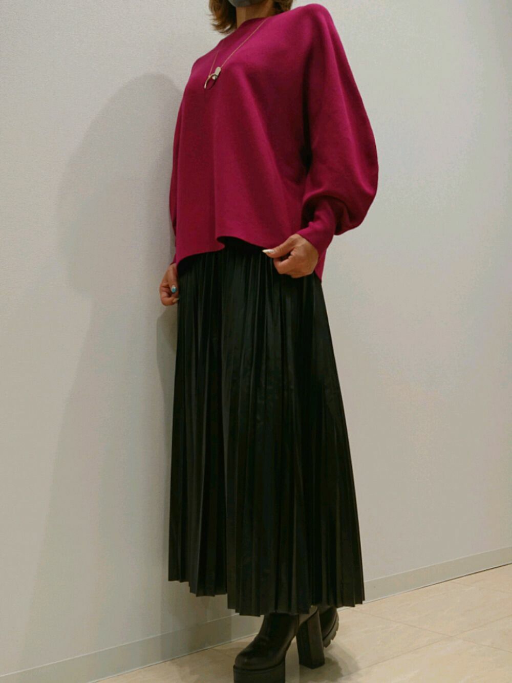 堺北花田INTERPLANETのスカート「フェイクレザープリーツスカート」を使ったコーディネート