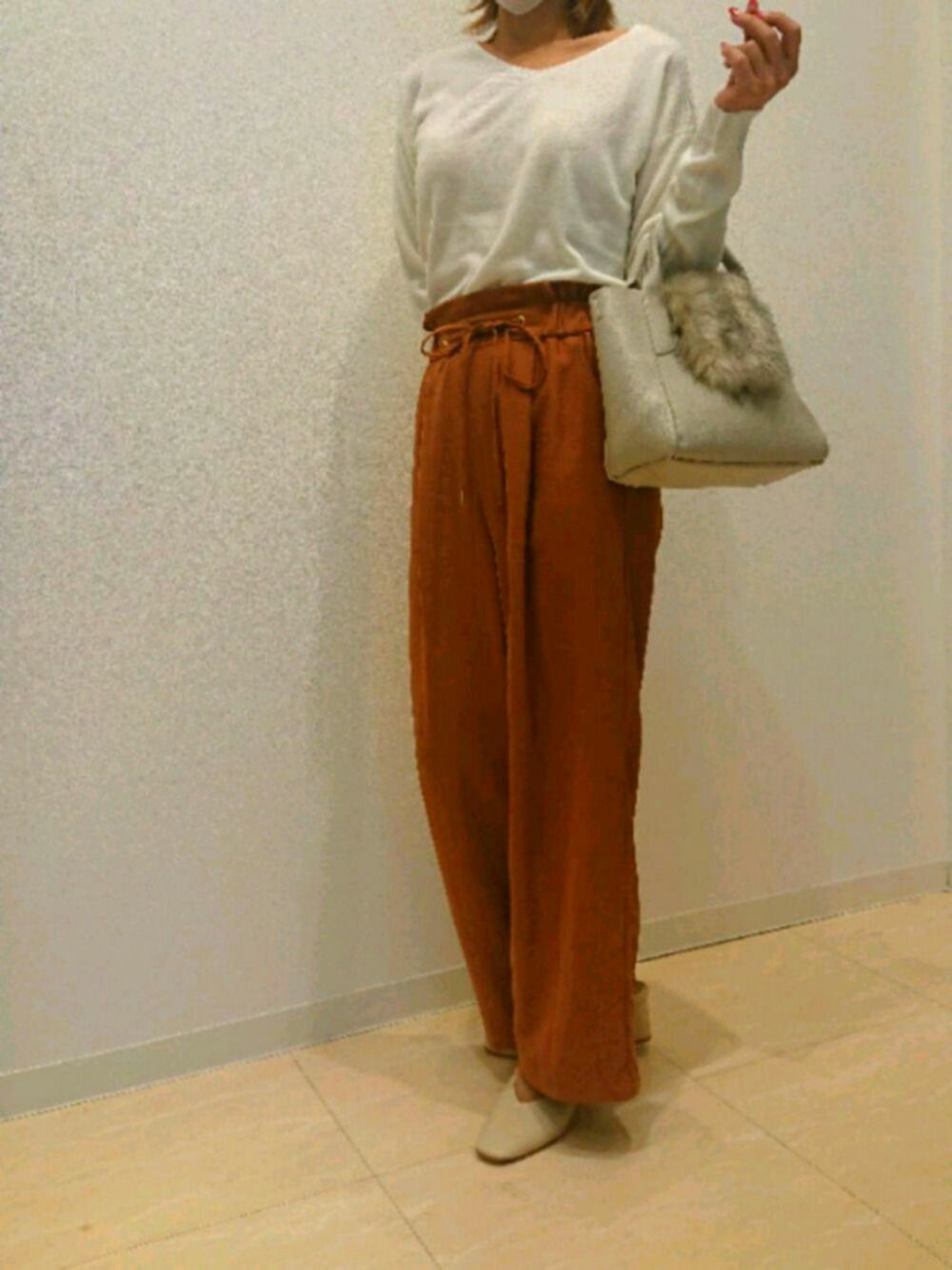 今日のトップスはWeb限定の肌触り抜群のVネックニット!! タイトなラインがお気に入りです♡ パンツはウエストがゴムだからめちゃめちゃ楽ちん🎶 太すぎないシルエットがGood。 今の時期にピッタリなコーデになりました◎ フォロー&いいねお願いします\(^_^)/ モデル身長 161センチ