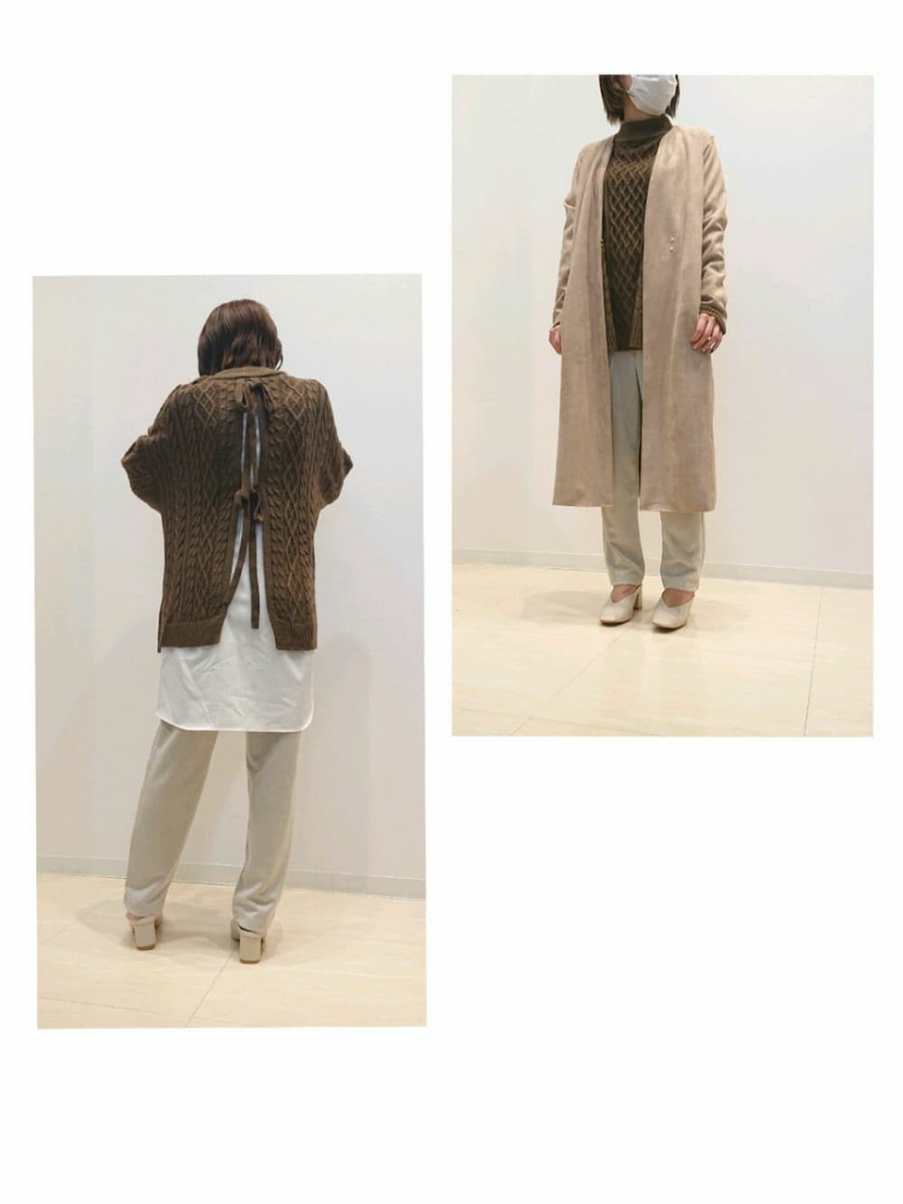 女性らしい暖かいカラーでまとめました😊 お気に入りはニットとコート! 定番のケーブル編みニットをレイヤード風にアレンジ✨ コートを脱ぐとバックのリボンが見えて可愛い♥️ 薄手のコートは春まで着られるのが嬉しいですよね+。:.゚。+゚ スエード生地なのでカジュアルも綺麗めも自由自在◎◎ ┈┈┈┈┈┈┈┈┈┈ please follow me :) ┈┈┈┈┈┈┈┈┈┈ モデル身長151cm