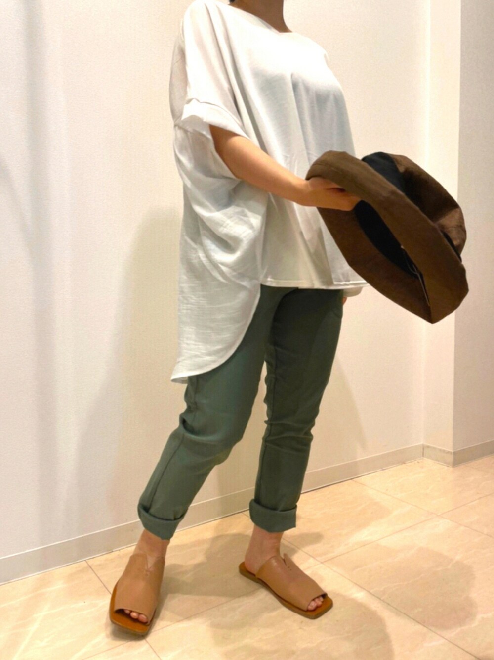 いつも見ていただきありがとうございます💕 白カットソー前後違う生地を使い着心地 抜群✨✨ パンツ夏カラーオリーブストレッチ素材を使いこれもまた履き心地抜群🌟🌟 是非 お試し下さいませ♪♪