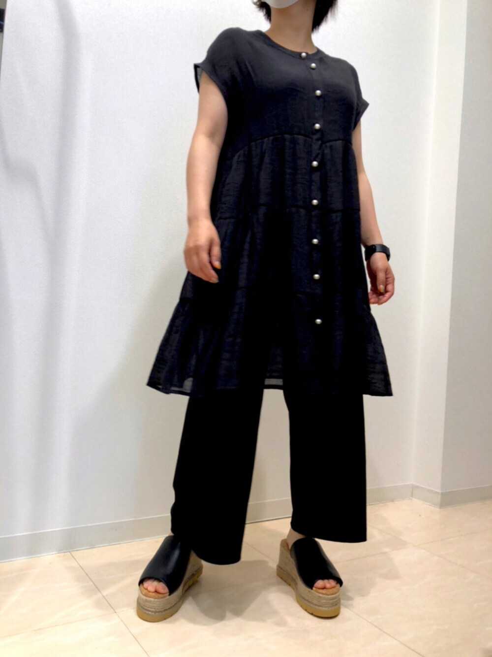 堺北花田INTERPLANETのシャツ/ブラウス「RTスラブパール釦ティアードブラウス」を使ったコーディネート