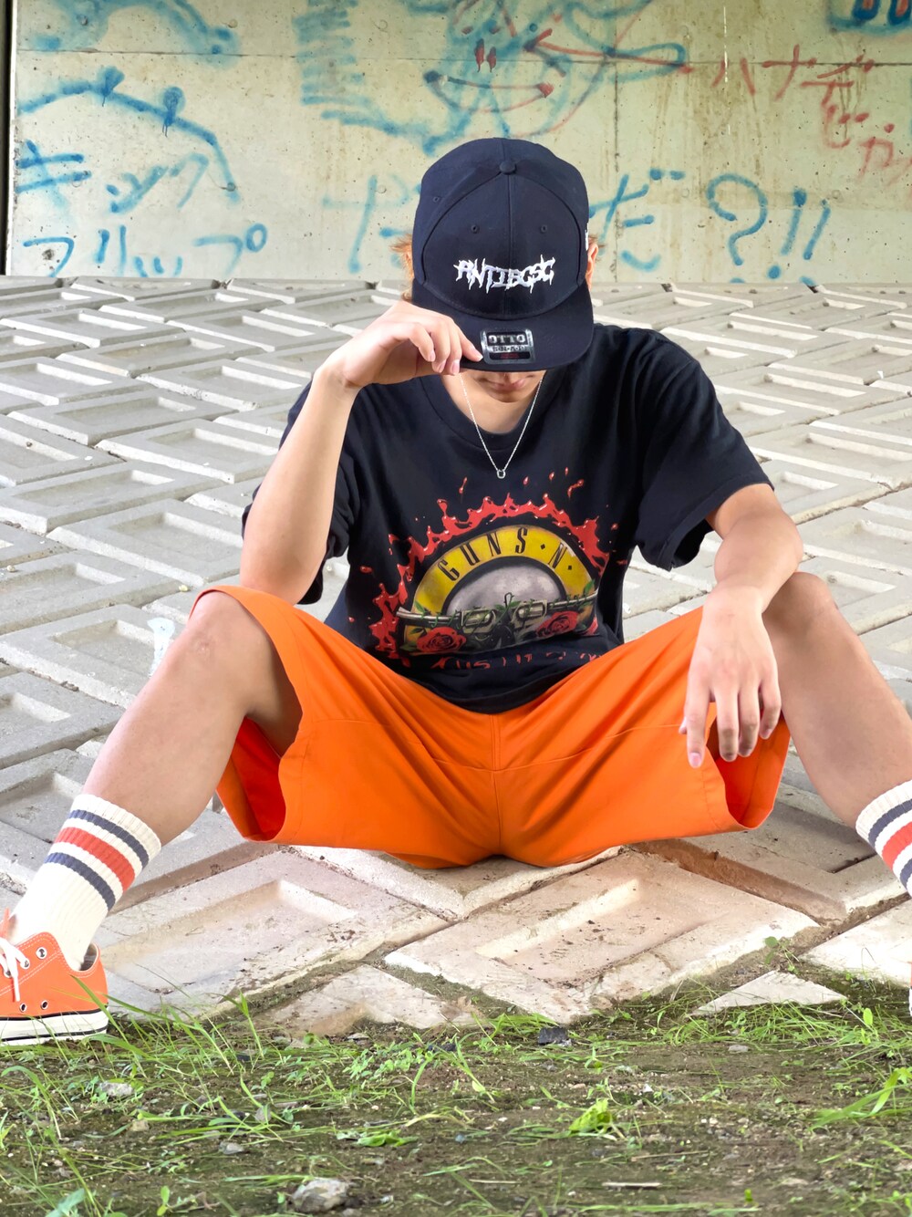 ストリートコーデ guns n' rosesの古着Tを入手したので全体オレンジでまとめてみました🍊 ちなみにANTIBCSCはご存知ですかね、