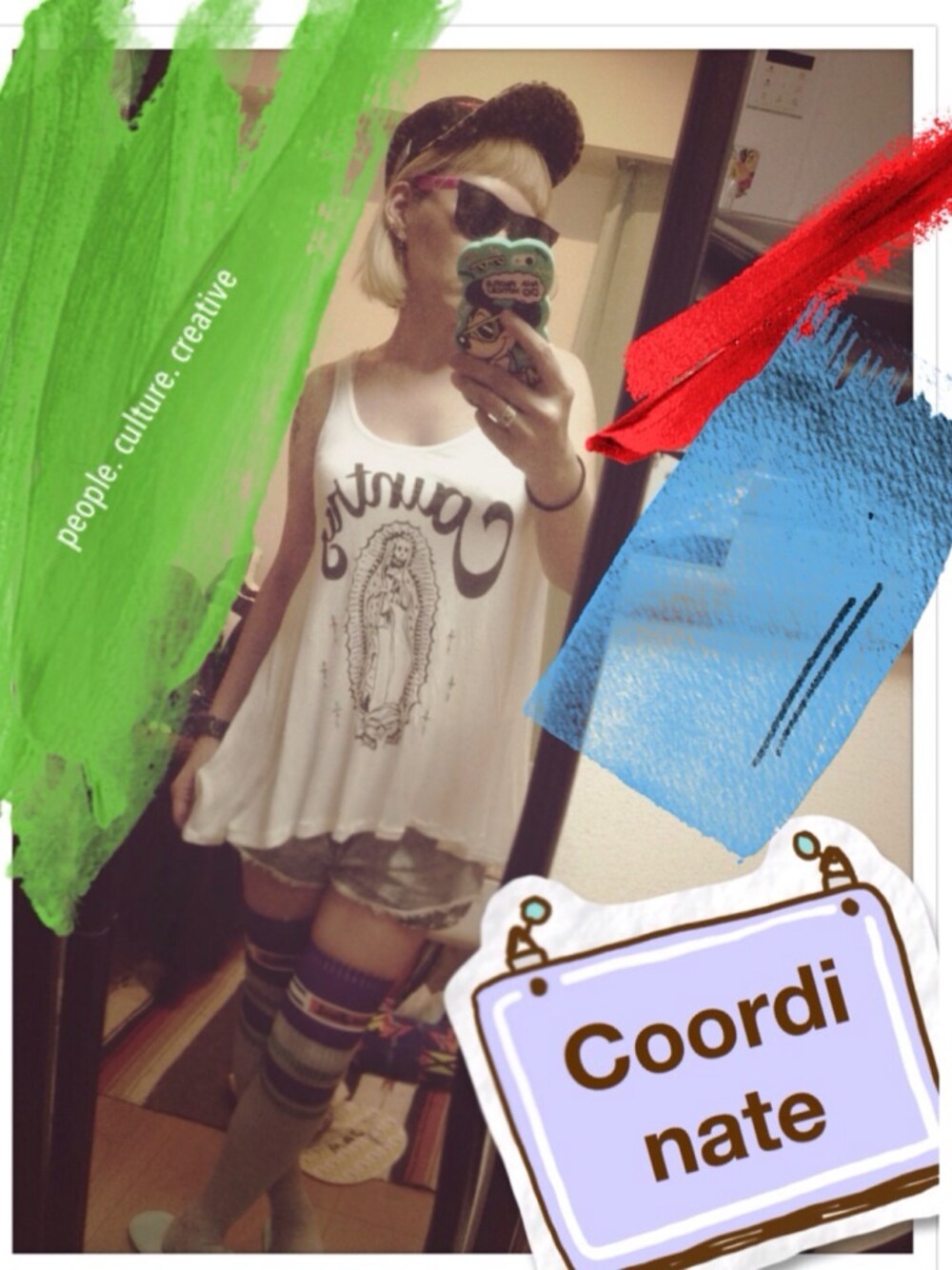 いつかのコーデ☆ トップス ショーパン RODEO CROWNS ニーハイソックス、キャップ RNA サングラス 、スニーカー x-girl