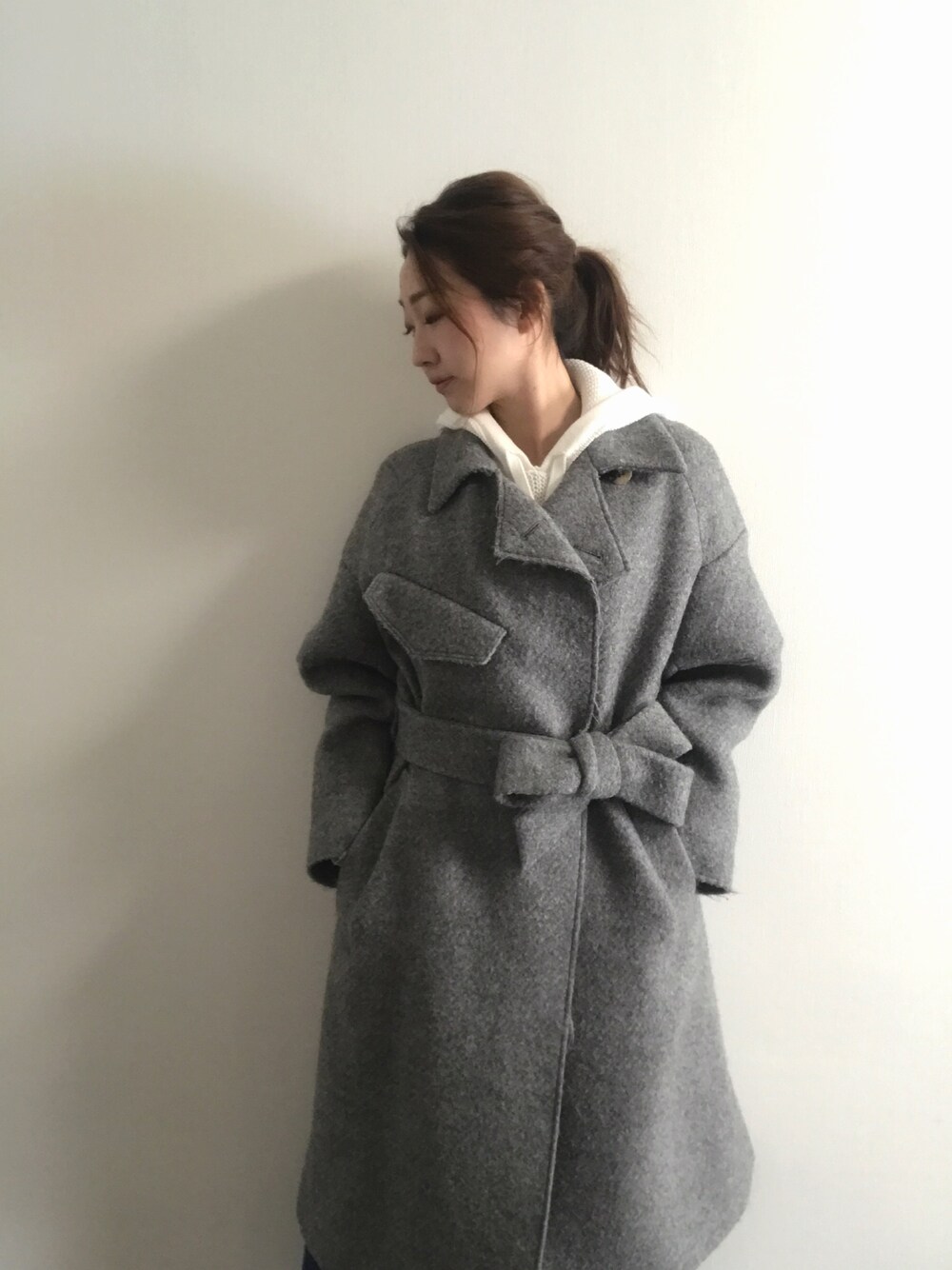 コートの下には今流行りのパーカーを。 首元の寒さ対策にもなるし、重めなコートの 抜け感にも繋がって◎