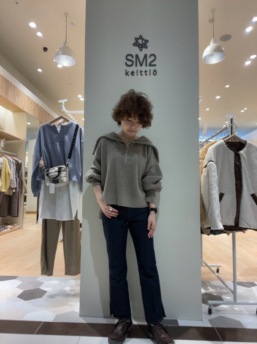 おはようございます☀ SM2 keittio ヴェルサウォーク西尾店 イヌヅカです🐶 本日はblueの新商品を 着用しておりますꙭ҉ꙭ҉ ハーフジップがめちゃくちゃかわいい ニットはアクリル素材で チクチクしません😇 フレアパンツで 90’sっぽい 着こなしにしてみました♡