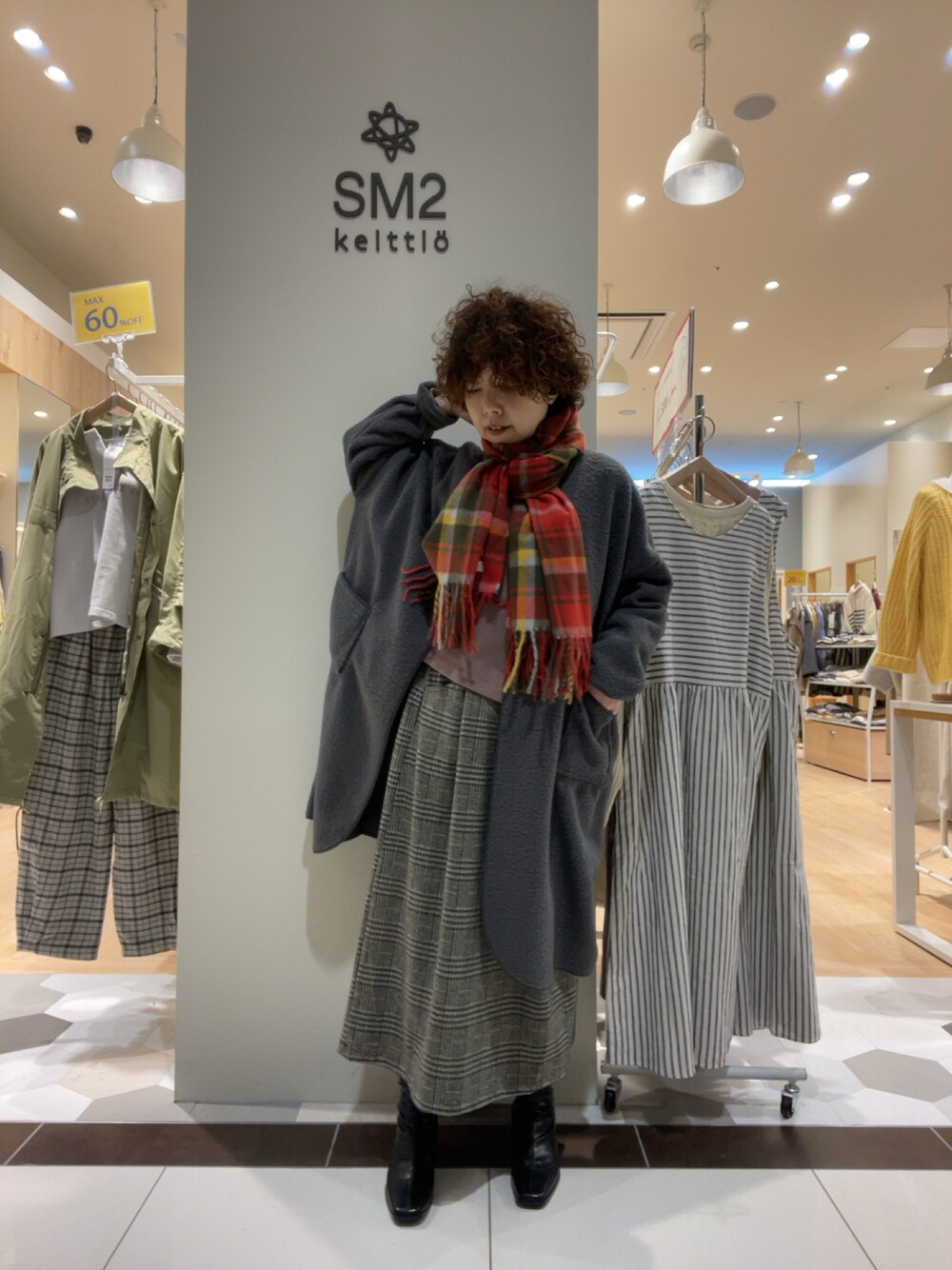 イヌヅカのストール/ショール「チェックストール」を使ったコーディネート
