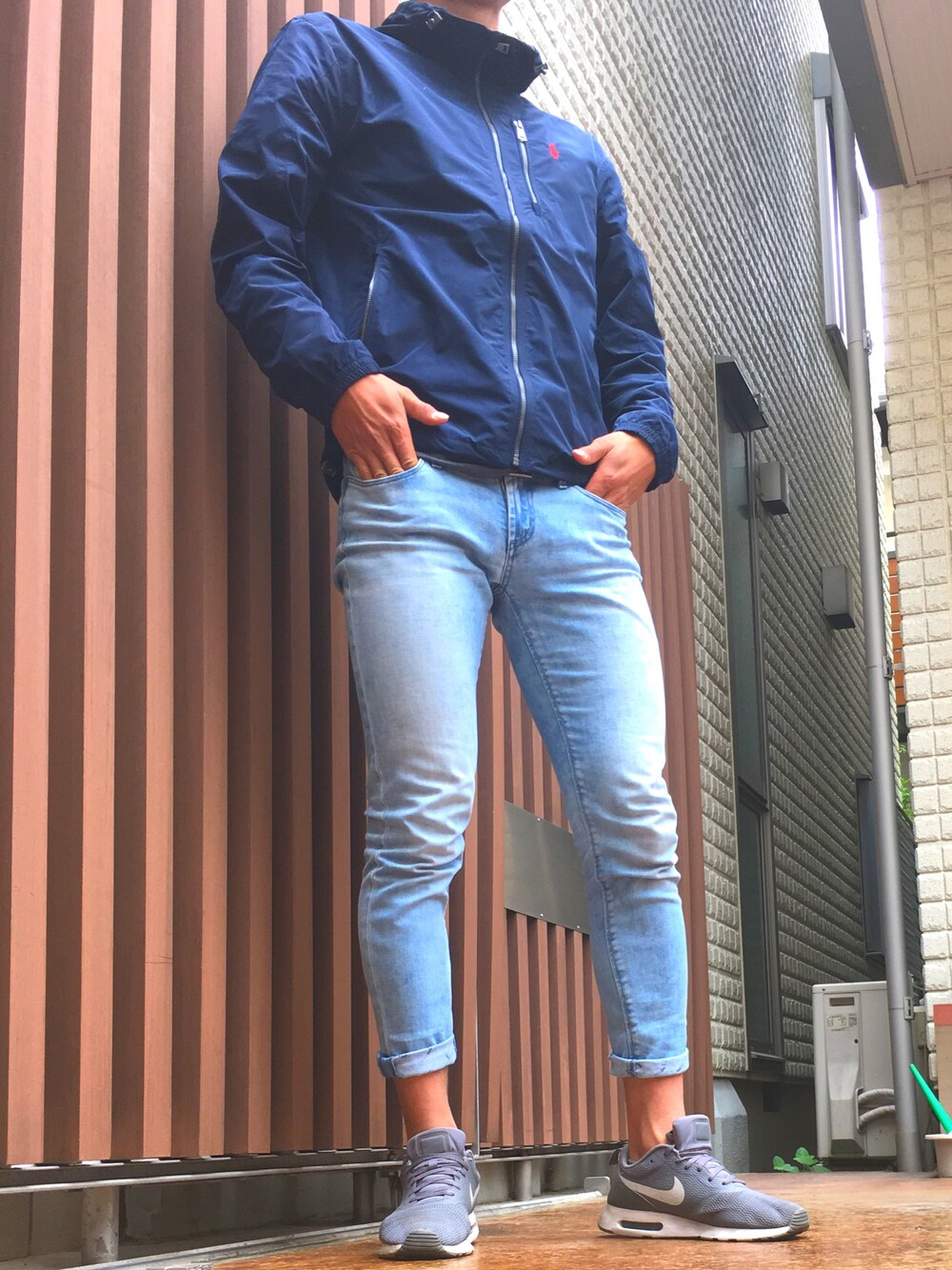 久々の投稿。 デニムを折ると絵柄がでてきてかわいいと思いました🤔帰り雨が降ってきたけどこのジャンパーが水をはじいてくれました!!