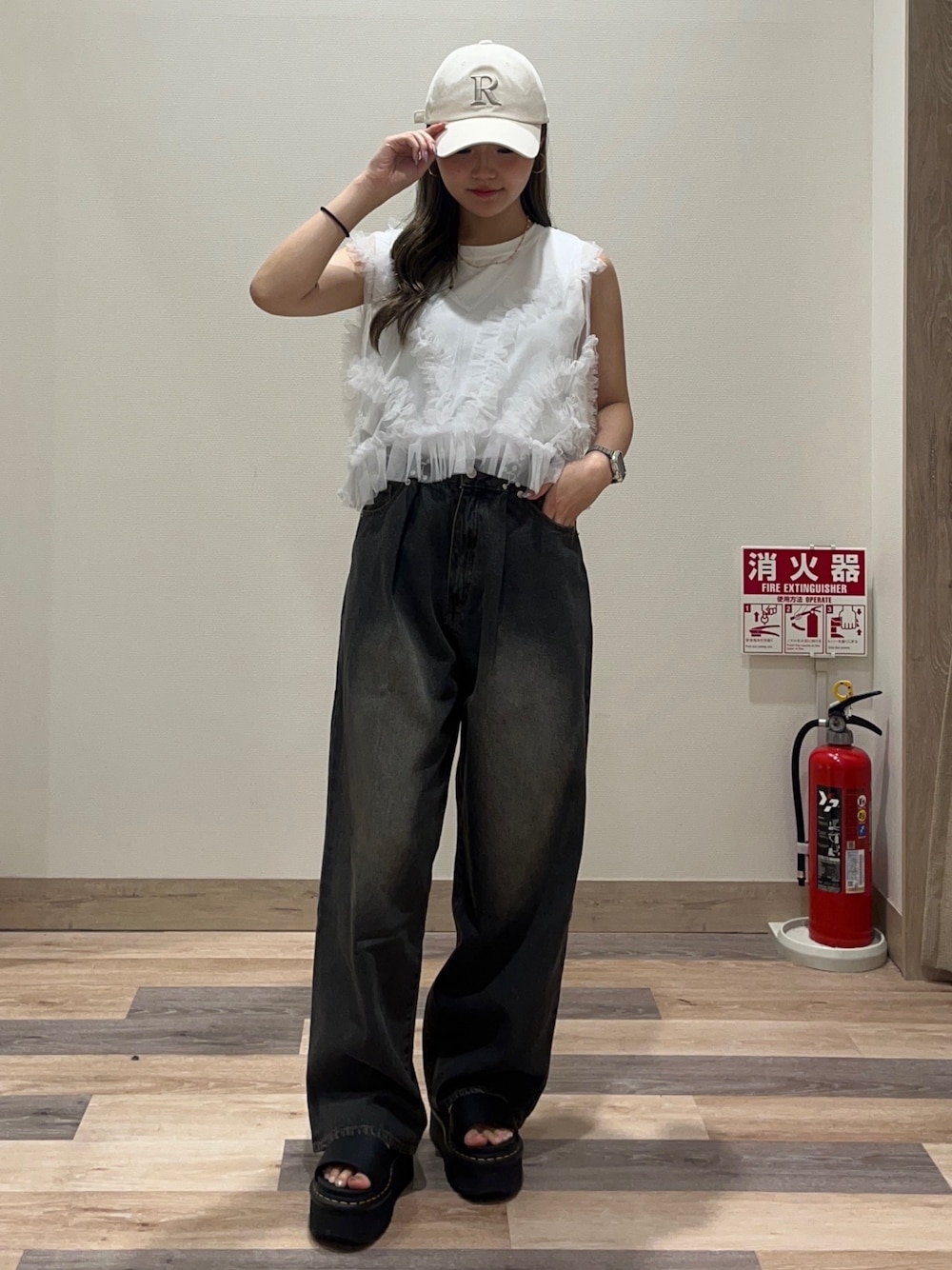 ふわっとチュールトップスは、ガーリーすぎない程よい甘さが魅力。 ブラックデニムとキャップを合わせて、甘辛MIXなカジュアルコーデに🎀 ちょっとしたお出かけやデイリーにもぴったりなバランスコーデ!
