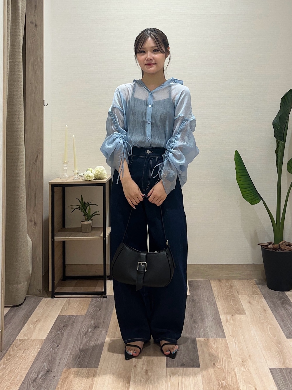 袖を好きな長さに絞れるシアーシャツは夏の日焼け対策に大活躍です! デニムと合わせてカジュアルな夏コーデにしました!☀️ 体のラインを拾わないデニムなので、骨盤が気になる方でもキレイに着れます◎
