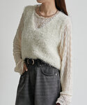 sara(Thevon.)のニット/セーター「フェザーヤーンVネックベスト」を使ったコーディネート
