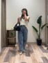 フェザーベストで可愛さをプラスしたカジュアルコーデ! ベロアのパンプスで秋感を🍂