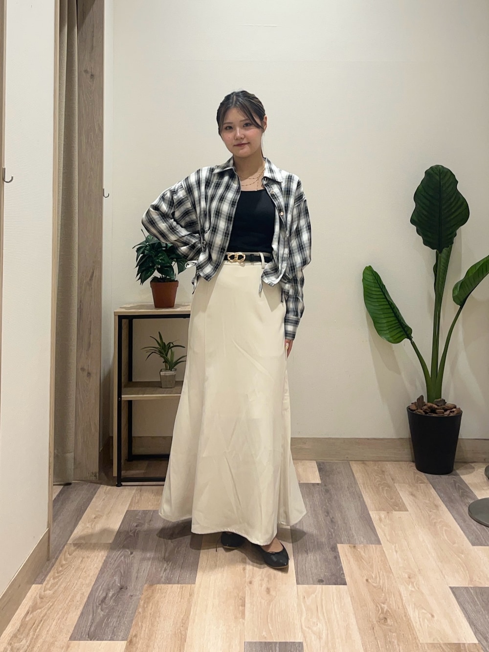 チェックシャツとスカートを合わせた大人すぎないコーデ! モノトーンでまとめました🙆♀️
