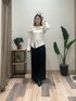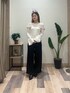 前後2wayで着れるトップスです! どちらできても可愛い💕 今着てる方だと裾の前側に切り込みが入ったデザインになっているので、インしなくてもオシャレな着こなしになります! 真っ直ぐなラインのスラックスも、実はハイウエストになっているので、骨盤からカバーしてくれます🙆♀️