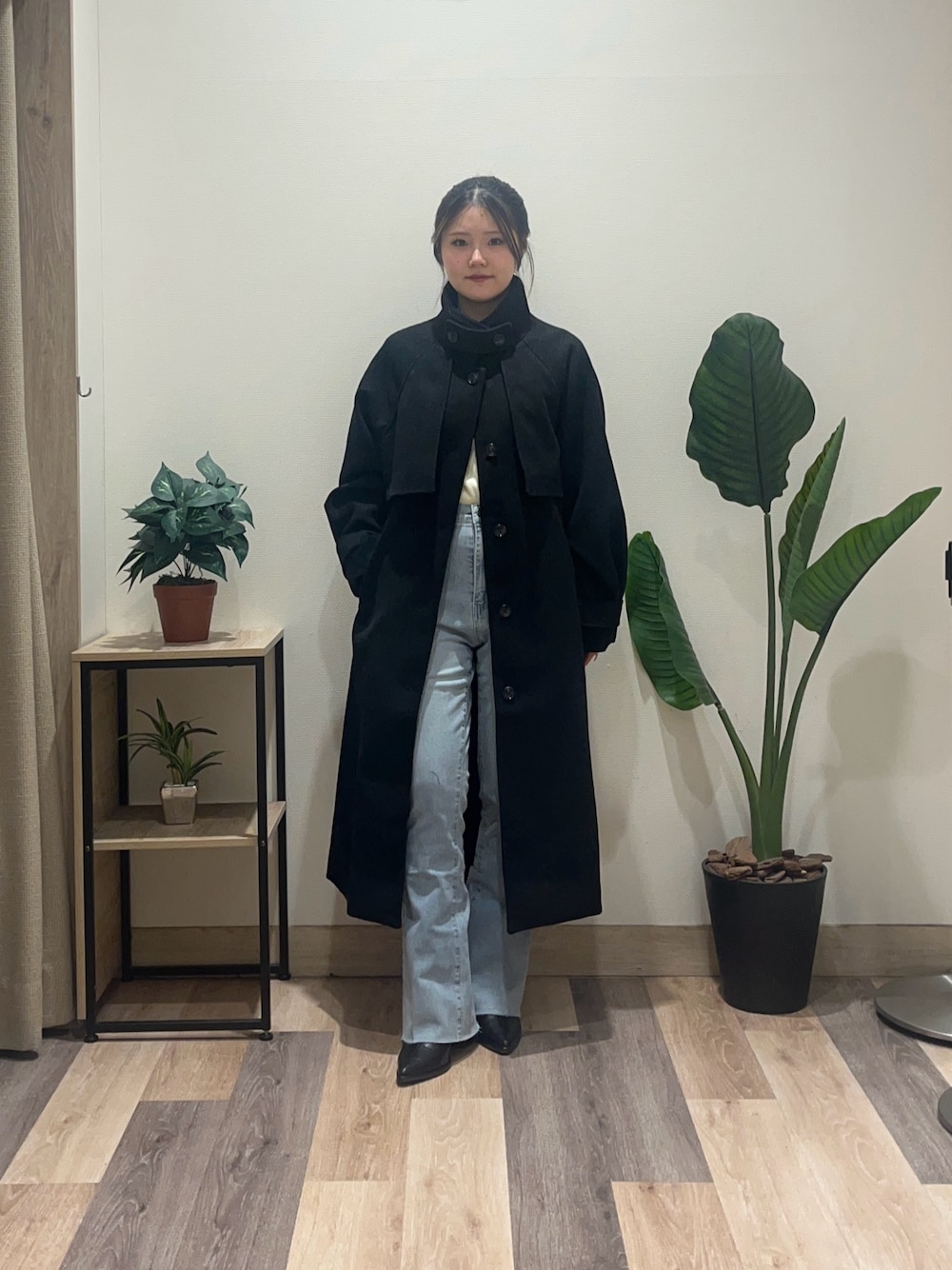 154cmの私でも、綺麗にコートを着れるので、低身長さんでも着れます! 襟を立てても折っても可愛く着ることができる形の綺麗なコートです🙆♀️