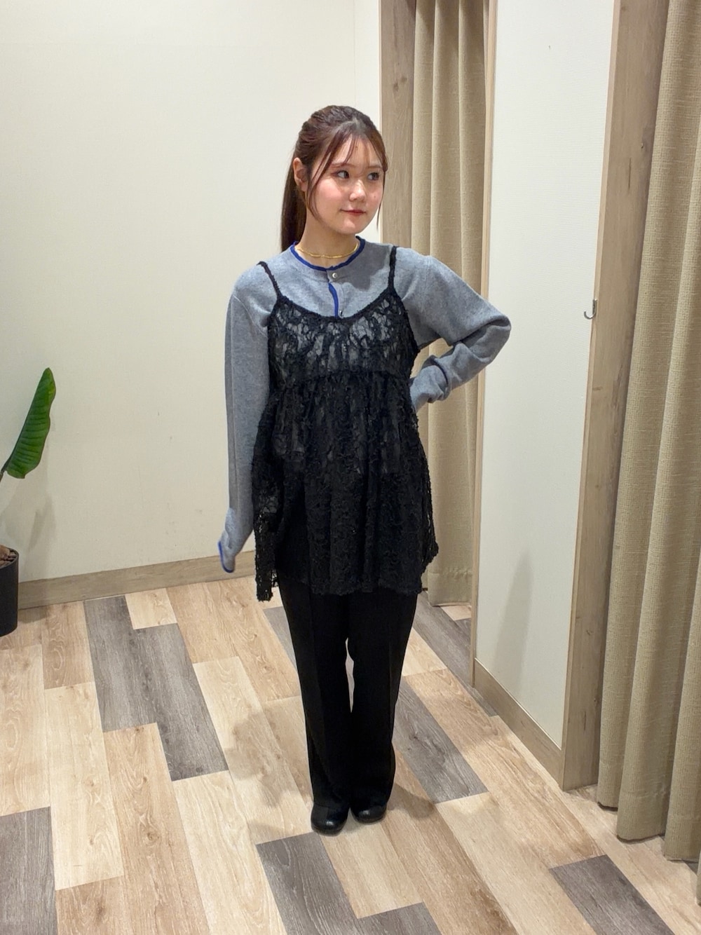 レイヤード風のカーディガン! 一枚でおしゃれに見えるアイテムです♪ 縦ラインがキレイなので、スタイル良く見えるパンツです!
