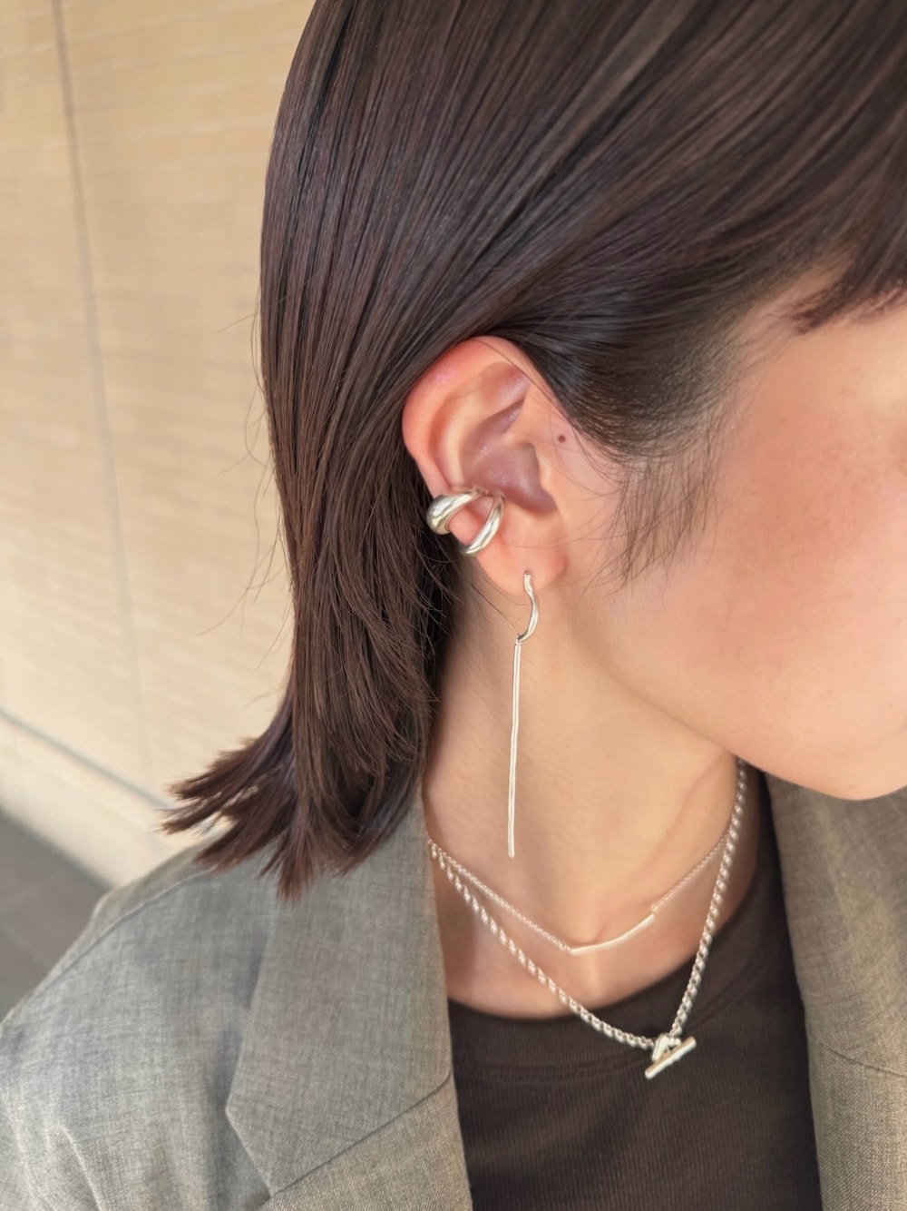 ドリップイヤーカフは、重なり合ったデザインが特徴で、ひとつ着けるだけで重ね付けをしているような雰囲気を楽しめます✨ シンプルながら程よい存在感があり、耳元をさりげなくおしゃれに見せてくれます! ヤーンピアスは、髪をおろしたスタイルにはもちろん、アップヘアやショートヘアにも合わせやすく、ヘアスタイルやコーディネートによって違った表情を楽しめるアイテムです♪ 少し揺れるデザインが可愛らしく、デイリー使いはもちろん、カジュアルコーデからオケージョンシーンまで幅広く活躍してくれます^^