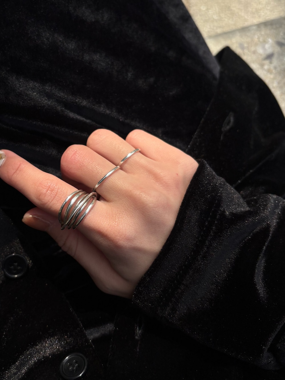 ビロウリングにラインリングを重ねた、シルバーで統一した手元コーディネートです✨ ボリューム感のあるリングと華奢なリングの組み合わせはバランスが良く、手元全体が程よく引き締まった印象になります♪ 【着用アイテム】 ・ビロウリングSV/11号 ・ラインリングSV 01(9号・11号)
