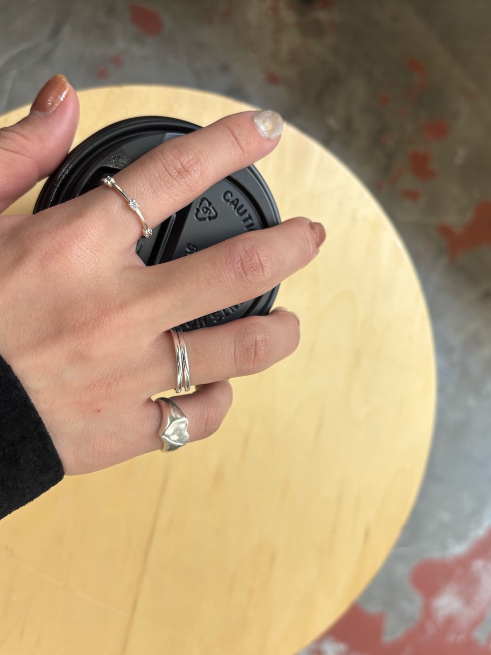 シルバーで統一させたリングコーディネート✨ 統一感のあるSVカラーでまとめつつ、それぞれデザインの違いでメリハリをプラス。 ルクスリングはキュービックジルコニアがあしらわれたデザインで、動くたびにさりげなくキラッと輝いてくれます! 主張しすぎないのでデイリーにも取り入れやすいアイテムです! ラインリングは2本セット。サイズ違いの組み合わせなので、重ね付けはもちろん、指を分けて着けてもバランスよくまとまります♪ ハートシグネットリングは小指に合わせてボリュームを出すのがお気に入り。シンプルなコーデのアクセントになってくれます! 【着用アイテム】 ・ルクスリングSV/11号 ・ラインリングSV 01(9号・11号) ・ハートシグネットリングSV/3号