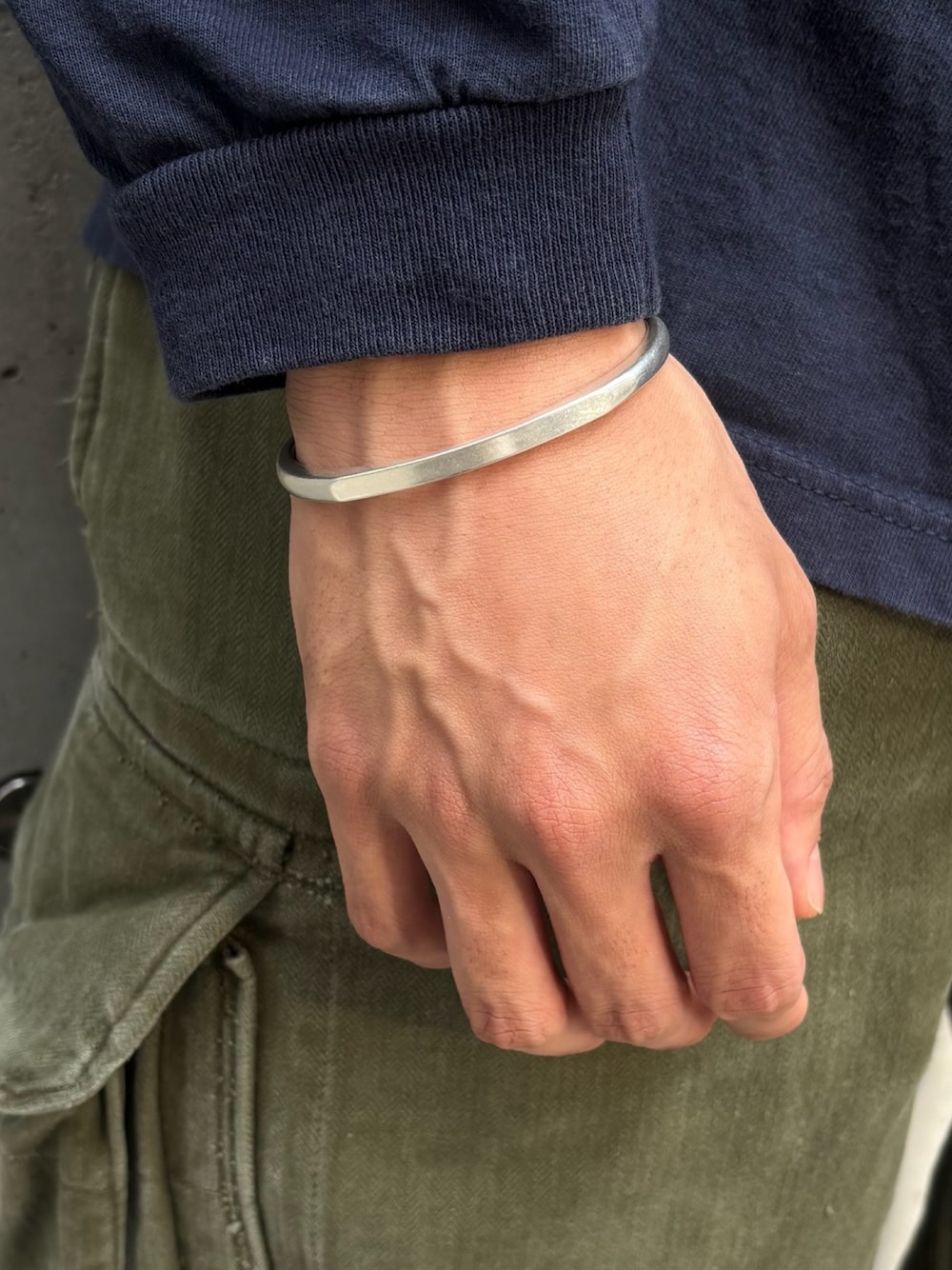 メンズにおすすめのアイテムをご紹介します! プレイナーバングルは、ちょうどいいボリューム感が魅力のアイテム。 面をスパッと切ったようなデザインで、程よく存在感をプラスしてくれます! ひとつ身につけるだけで、手元がぐっと華やかに◎ 【着用アイテム】 ・プレイナーバングルSV-M