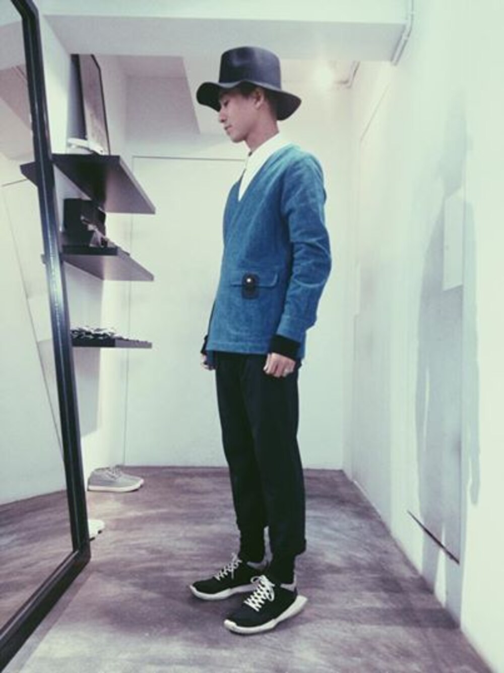 Ionism staff Andy daily style 今日以都會漢系服裝與街頭時裝,兩種不同風格結合,產生衝突後的美感. -Ionism VOID 拼接襯衫 -Ionism x OVERTONE 顯微鏡長Tee -Teaser 九分打折西裝褲 -OqLiq 古裝綁帶外套