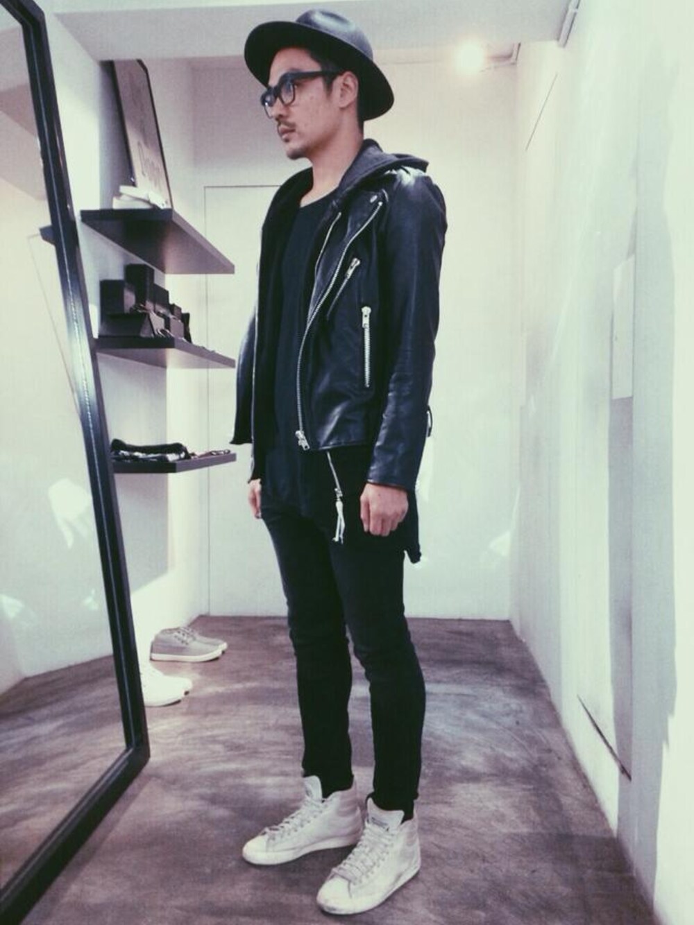Ionism designer Sean daily style 經典的騎士皮衣,是秋冬必備單品,加上高質感的純羊毛紳士帽,再戴上精緻光學眼鏡,讓街頭時裝的氛圍裡多了文青的氣息,大家也來試試. -騎士皮衣 -Ionism 素帽夾 -Nexhype 紳士帽 -KUBORAUM 眼鏡
